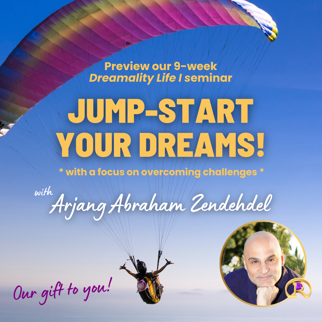 Join Arjang Abraham Zendehdel LIVE at our one-night Dreamality Introductory Seminar "Jump-Start Your Dreams!" as our GIFT to you!